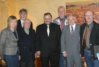 Als Präsident der Deutsch-Israelischen Gesellschaft referierte Dr. h. c. Johannes Gerster aus Mainz über das Thema "Pulverfaß Nahost - Ist der Nahe Osten noch zu retten?" Gerster war ein Jahrzehnt Leiter des Jerusalemer Büros der Konrad-Adenauer-Stiftung. Von links: Angela Schneider-Forst, Martin Gerhardt, Vorsitzender der Jüdischen Kultusgemeinde Koblenz, Dr. Heinz Kahn, Johanes Gerster, Eugen Arnold, Dr. Manfred Unglaub, Karl-Josef Peil.