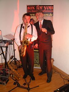 Dr. Ralf Brauksiepe, MdB, (am Pult) Sprecher der Unionsfraktion für Arbeit und Soziales referierte bei der CDA in Lahnstein: "2. Halbzeit der Großen Koalition ~ Herausforderungen der Arbeitsmarkt- und Sozialpolitik. Von links: Matthias Lammert, MdL, Martin Gerhardt, Johannes Lauer. Unten: Saxephonist Vladimir Nadtochij, Köln ~ Saxophon Live Entertainment ~ CDA Rhein-Lahn
