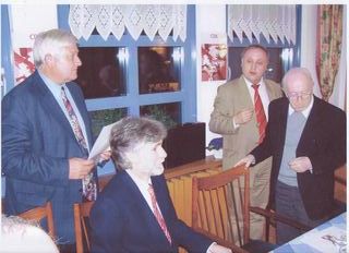 Der Unternehmer Robert Wolff zeigte sich überzeugt, daß im globalen Wettbewerb mittel-fristig nur diejenigen Unternehmen bestehen können, die über Kooperation mit den Arbeit- nehmern diese beständig Sicherheit, Partnerschaft und Anerkennung erfahren lassen. Diese Kooperation führte in seinem Unternehmen zu einer enormen "unternehmerischen Mitar- beit" seiner Beschäftigten und setzte ungeheure innovative Kräfte frei, so Robert Wolff. Heute würden solche Maßnahmen durch eine regressive Führungsform sowie Bürokratie erstickt. Es folgte eine rege und intensive Diskussion, die vom stellvertretenden Landesvorsitzenden der CDA, Clemens Henzler, moderiert wurde. Zum Abschluß überreichten Martin Gerhardt und Eugen Arnold (Vorsitzender CDU Gemeindeverband Nassauer Land) an den langjährigen Betriebsratsvorsitzenden der Firma Leifheit AG , Wolfgang Schön den Windthorst-Ehrenbrief.