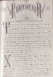 Hymnus mit bis heute auf dem Athos gebräuchlichen Neumen, übertragen aus einem mittelalterlichen Manuskript von Meletios o Sikiotis