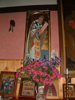 Gästeraum - Trapeza mit dem Bild des serbischen Patriarchen Pavle