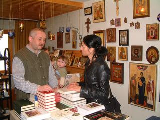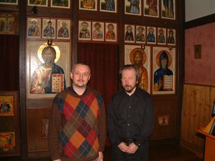 Theologe Thomas, Taufpate von Andreas (links) führte den Klosterladen - Alexander aus Troize Sergej Passad in Rußland ist der Schöpfer der Ikonase und unser Trauzeuge