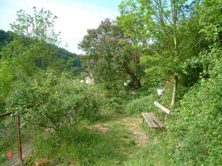 Auch für russische Liturgiebesucher ist Lektüre reichlich vorhanden. Klostergärtchen. Lahnabwärts.