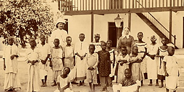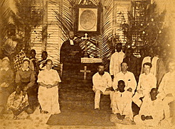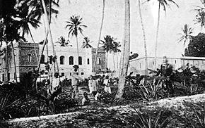 Oben: Missionsstation in Daressalam. Unten: Weihnachtsfest ebendort