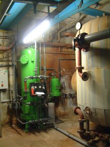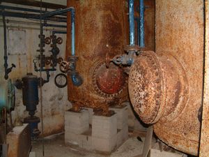 Blick in Kellerbereich - nach hinten ebenerdig - in welchem in der der Straße zugeneigten Seite möglicherweise auch Speisen eingenommen wurden. Das Hotel "Mainau" hatte in der Eintrachtsgasse bis zur Aufgabe des Pensionsbetriebes durch die Geschwister Aschermann eine Küche, die den Abschluß der Eintracht- gasse bildete. Neben dem abgerissenen Haus "Normandie" befand sich eine Treppe als Aufgang zur Bäderlei mit Rondell, Mooshütchen und Concordiaturm.