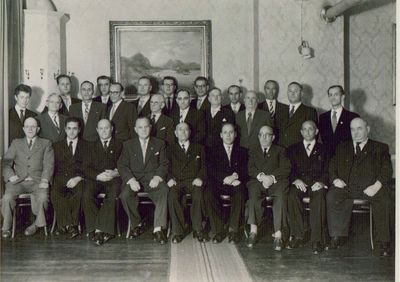 Die Sänger des Männergesangsvereins "Sängerlust" in den fünziger Jahren im "Weilburger Hof", links in der ersten Reihe rechts der Besitzer Bühler, welcher später in der Wohnung von Deckers in der Eintrachtsgasse ("Normandie") wohnte, welcher Gärtner im Hotel "Balzer" war. Unter den Sängern kannte ich bewußt noch u. a. den Metzger Kurt Mielke, den Polsterer Zimmermann, Schuster Aulmann (Pfahlgraben) und Dachdeckermeister Ernst Sprie- stersbach, der so etwas wie der Bürgermeister der Grabenstraße war. Er sagte, wir können unten alles zumachen, denn wir haben alles: Drei Bäk- kereien, zwei Lebensmittelgeschäfte (Wießler, Lehmler und später Molitor mit dem Milchauto), Schneiderei, Schreinerei (Reinig, später auch Reines), Schusterei, drei Gärtnereien (Weiß, Müller, Gerke), Metzgerei, Malergeschäft, ein Installationsgeschäft und Getränkevertrieb Born. Die Abgebildeten waren auch maßgeblich beteiligt bei der jährlichen "Hinnergässer Kirmes". Im Jahre 2008 gibt es alle diese Geschäfte nicht mehr - Aldi, Lidl & Co. lassen mit Billigarbeitsplätzen grüßen.