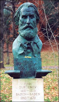 Im "Rebenstock" (Nr. 14) wohnte Victor Hugo (unten), gleich links daneben im "Mainau" Iwan Turgenew (darunter: Denkmal in Baden Baden)