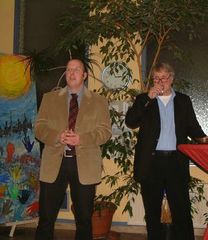 ![]() Prof. Robert Frietsch, Uni Koblenz, referierte im überfüllten AWO- Foyer beim 10. Jubiläum des Ge- meinde-psychiatrischen Zentrums des Rhein-Lahn-Kreises in Bad Ems: "Empowerment in der ge- meinde- psychiatrischen Arbeit", wobei er explizit praxisnah eine modifizierte Form der Client Cen- tered Therapy von Carl Rodgers mit einbezog. | ![]() Fotos (Martin Gerhardt): Zentrums- leiter Peer Lemmertz, Prof. Frietsch, Institut für Weiterbildung und angewandte Forschung (Uni Kob- lenz); Klientenarbeit; Foyer. Zu Beginn hatte AWO-Geschäfts-führer Frank Kröller das multi- professionelle Mitarbeiterteam vorgestellt. S. a. Rhein-Lahn- Zei- tung vom 12.12.08: "Fachvortrag sorgte für ein volles Haus" |