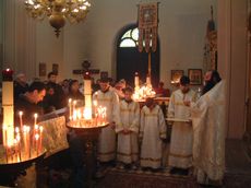 ![]() Orthodoxe Christen auf der ganzen Welt feierten am 7. Januar 2009 das Weihnachtsfest. So auch in der Hl. Alexandra-Kirche zu Bad Ems. Dies wurde vom SWF diskret aufgezeichnet. ![]() | ![]() In der Göttlichen Liturgie verlas Priester Boris (Zdrobau) die Weih- nachtsbotschaft von Erzbischof Mark, der für Deutschland, Großbri- tannien, sowie für die Gemeinde in Kopenhagen und im Heiligen Lande zuständig ist. (Fotos: M. Gerhardt) ![]() |