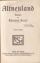 ![]() "Sportliche Begegnungen von Men- schen unterschiedlicher Kultur, Religion oder politischer Über- zeugung bauen Brücken der Ver- ständigung, fördern den gegen- seitigen Respekt und tragen zu einer friedlicheren Welt bei. Der Beitrag des Fußballs zur Ent- wicklung deutsch-israelischer Beziehungen nach der un- säglichen Holocoust-Kathastrophe ist eines von vielen Beispielen dafür", so Dr. Zwanziger. (Quelle: FAZ; Foto: Günther Lichius) | ![]() DFB-Präsident und CDA-Kolle- geTheo Zwanziger reist mit einer Delegation zum 60. Unabhängig-keittag des Staates Israel. Dabei wird er dem Schimon-Peres-Frie- dens-Center eine Spende der DFB- Stiftung Egidius Braun überrei- chen. Damit sollen 60 palästinen- sische und 60 israe-lische Kinder gefördert werden. Foto: Der 1902 erschienene visionäre Roman des Führers der zionistischen Bewegung Theodor Herzl (+ 1904). |