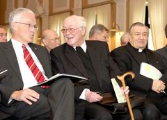![]() Ministerpräsident Jürgen Rüttgers, Heraus- geber Anton Rauscher SJ, Karl Kardinal Leh- mann beim 80. Geburtstag von Pater Rau- scher in Mönchengladbach. Lehmann: "Es be- steht kein Zweifel, daß dieses Handbuch eome große Bedeutung haben wird für die Gesell- schaft." Handbuch der Katholischen Soziallehre. Verlag Duncker & Humboldt, Berlin 2008, 1129 Seiten, 58 Euro | ![]() |